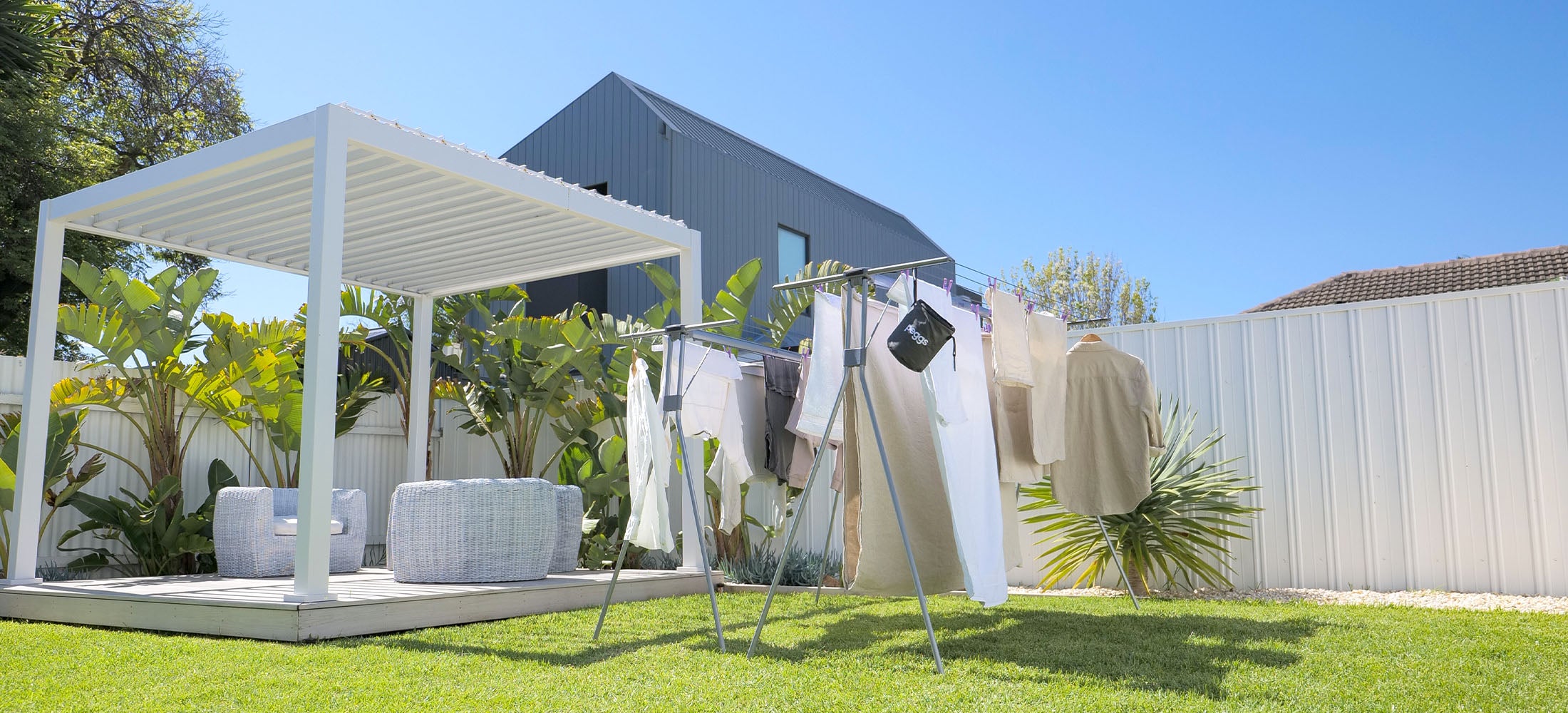 Discover the clothesline that fits your lifestyle. The Handy Line® is a portable, versatile solution that makes laundry day a breeze – no matter your home or weather conditions.