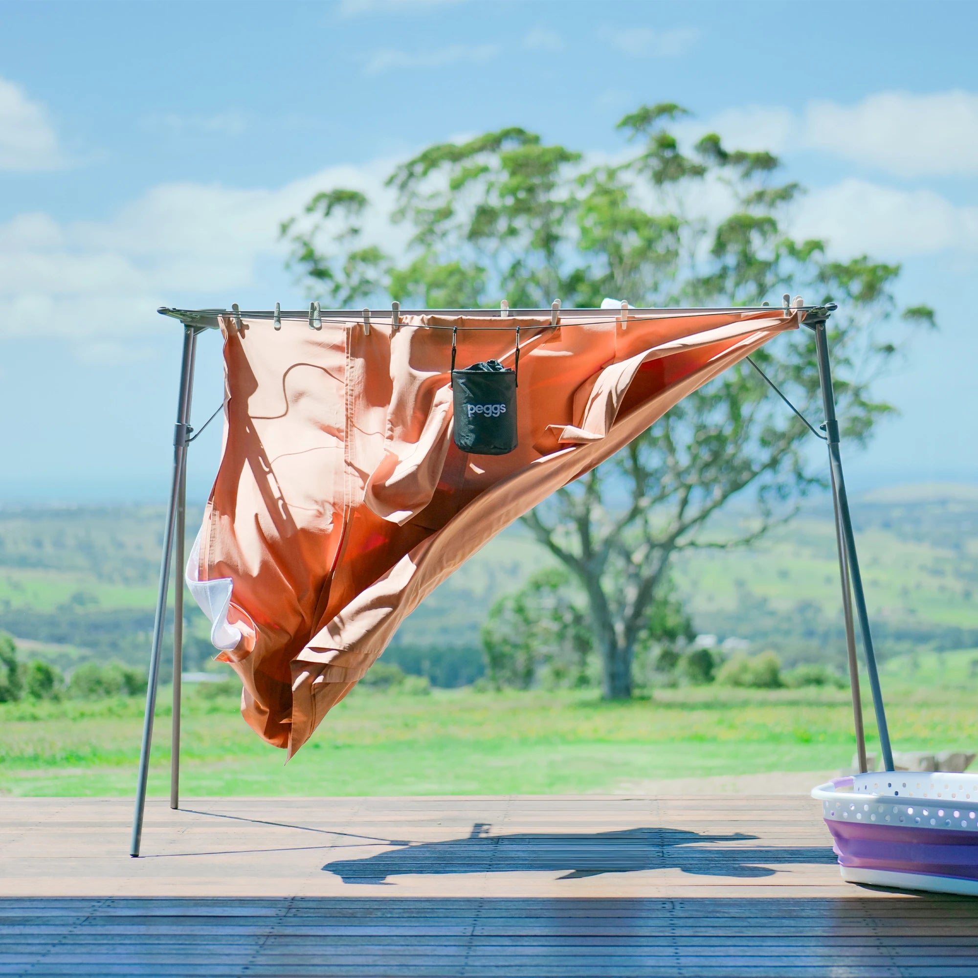 Our Deluxe 10 Essentials Bundle includes a Deluxe 10 Handy Line®, 48x Premium quality pegs, and a peg bag, providing all you need for a reliable drying solution.