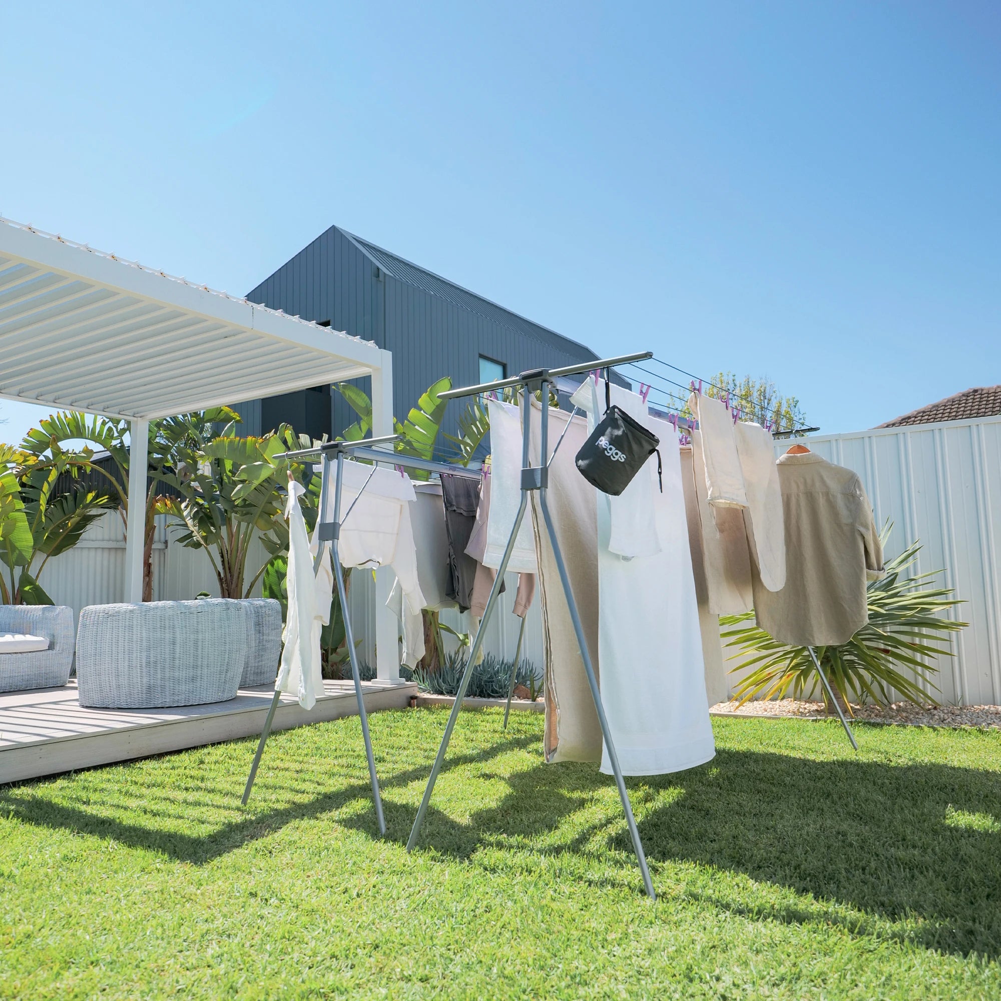 The Peggs Handy Line® is Australia's favourite clothesline, designed and built to last. Innovative and reliable, the Handy Line® comes fully assembled, and has been designed using best-in-class materials and construction techniques to deliver a product that's easy to use and efficiently dries your clothes, sheets, and towels.